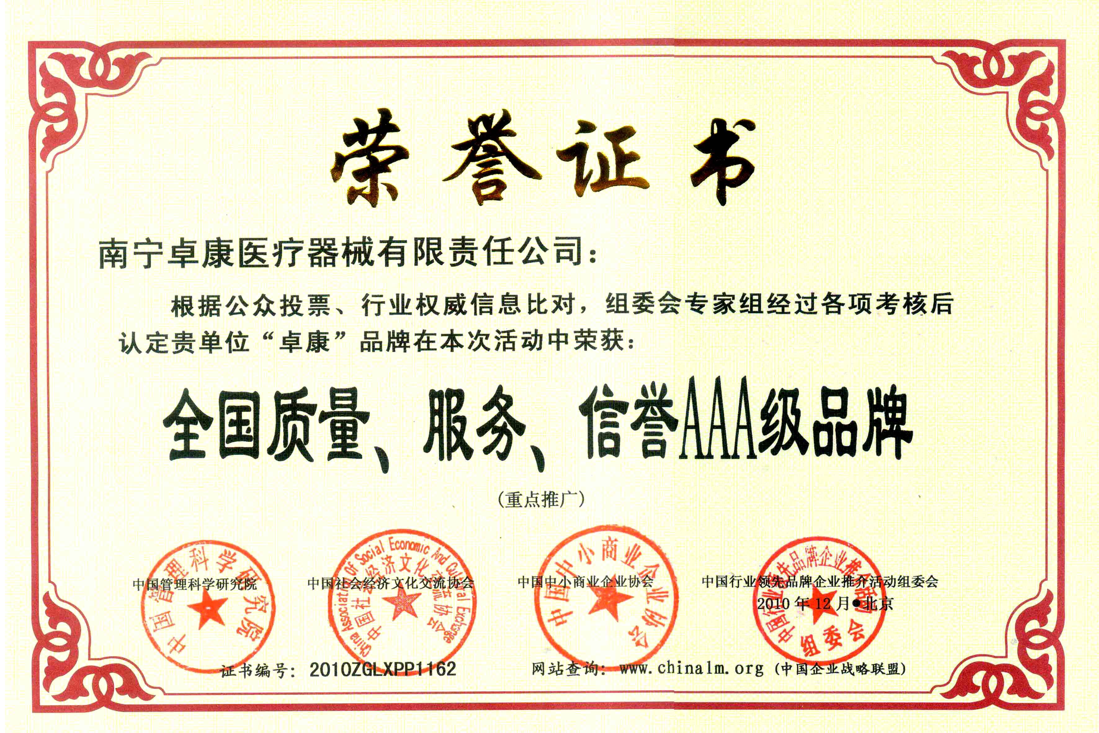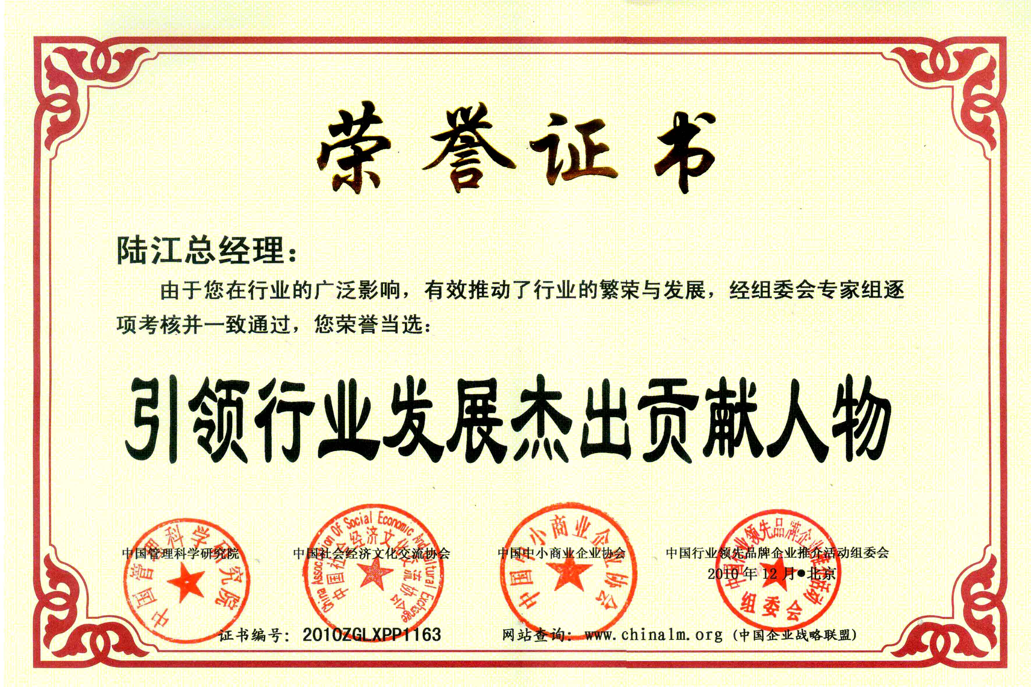 陸江榮獲引領(lǐng)行業(yè)發(fā)展杰出貢獻人物證書 --------卓康公司榮獲全國質(zhì)量、服務、信譽AAA級品牌證書