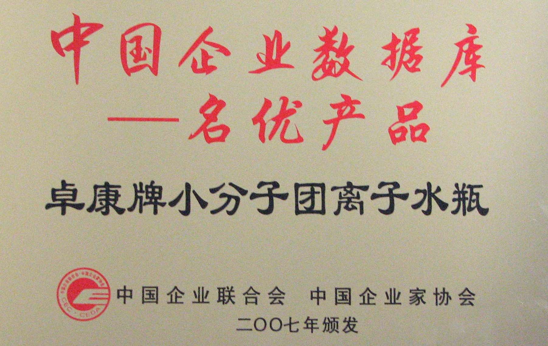 卓康牌離子水瓶榮獲中國企業(yè)名優(yōu)產(chǎn)品[點小圖見大圖]、中國著名品牌稱號[點小圖可見大圖]