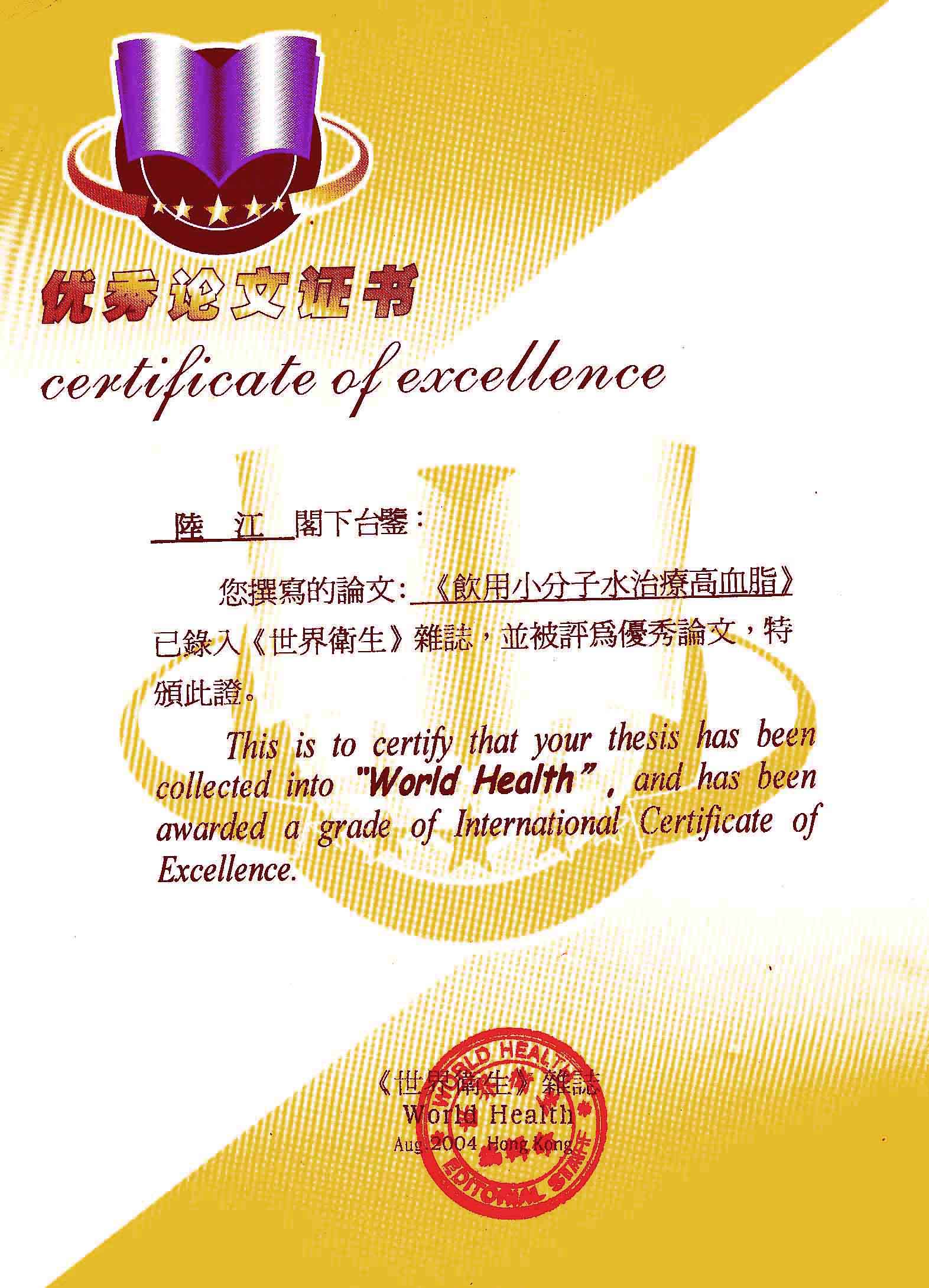 一、創(chuàng)造了在家在職場使用方便的微小分子團水器具。在世界上首先用此理療方法,大規(guī)模地成功地逆轉(zhuǎn)和消除動脈粥樣硬化,確實祛俆高血壓和冠心病與糖尿病,使患者恢復動脈和心臟及胰島的健康,可消除因細胞缺水使器官衰弱而形成多種器官的缺水性病癥,并使健康人可預防和減緩動脈粥樣硬化,減少心腦血管病,具有重大的社會經(jīng)濟和戰(zhàn)略意義。