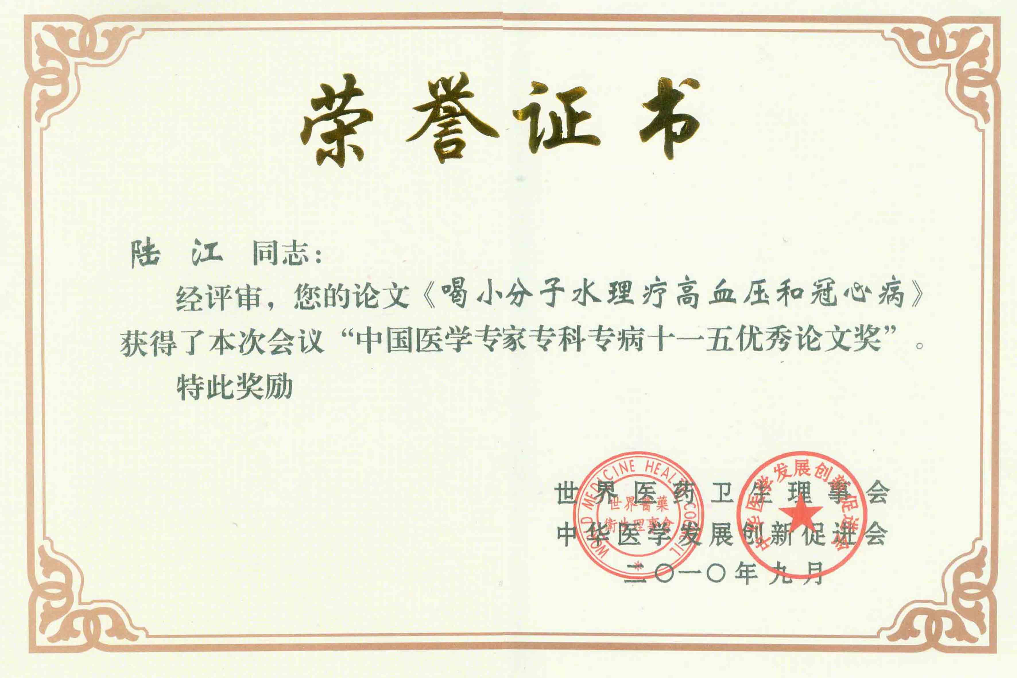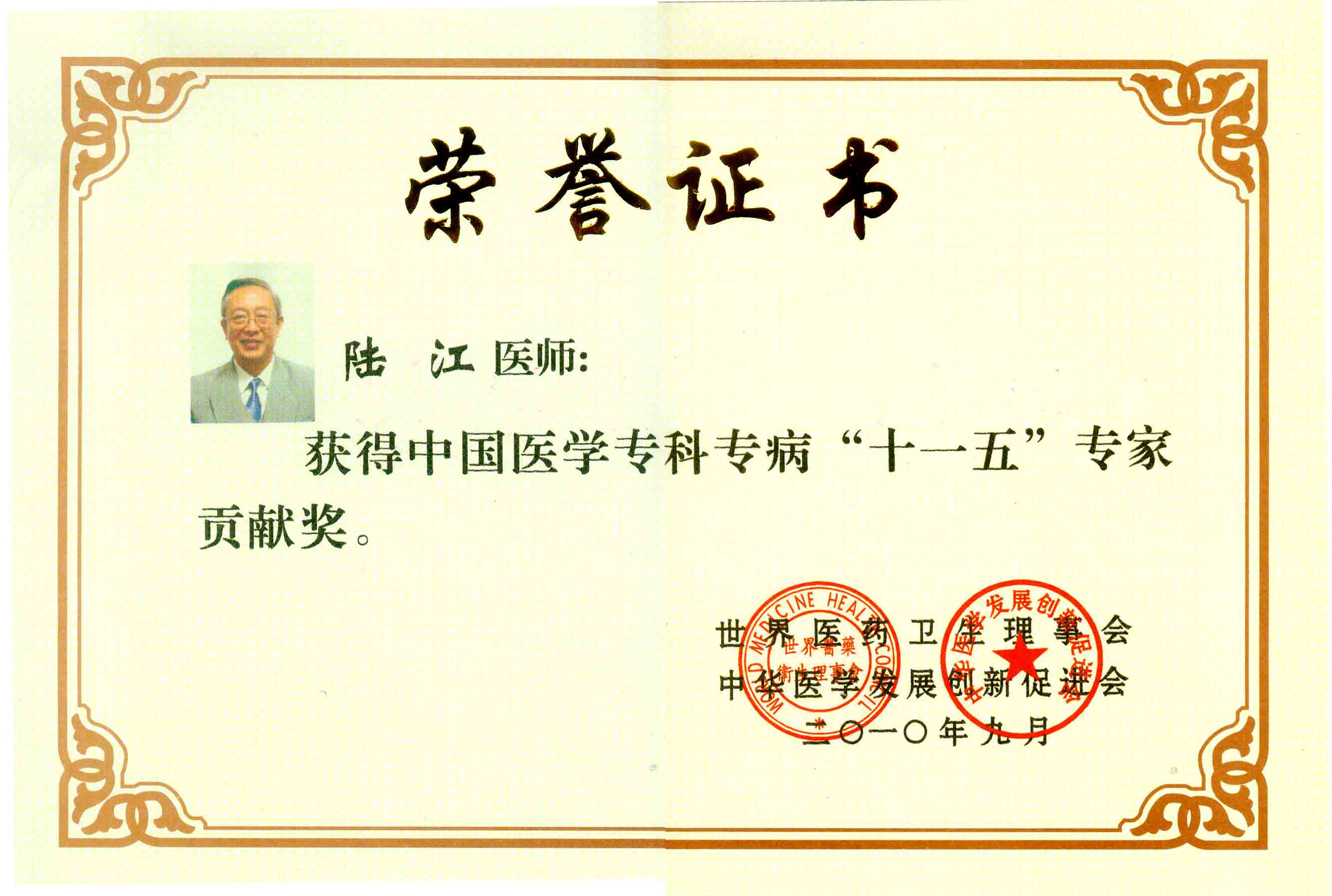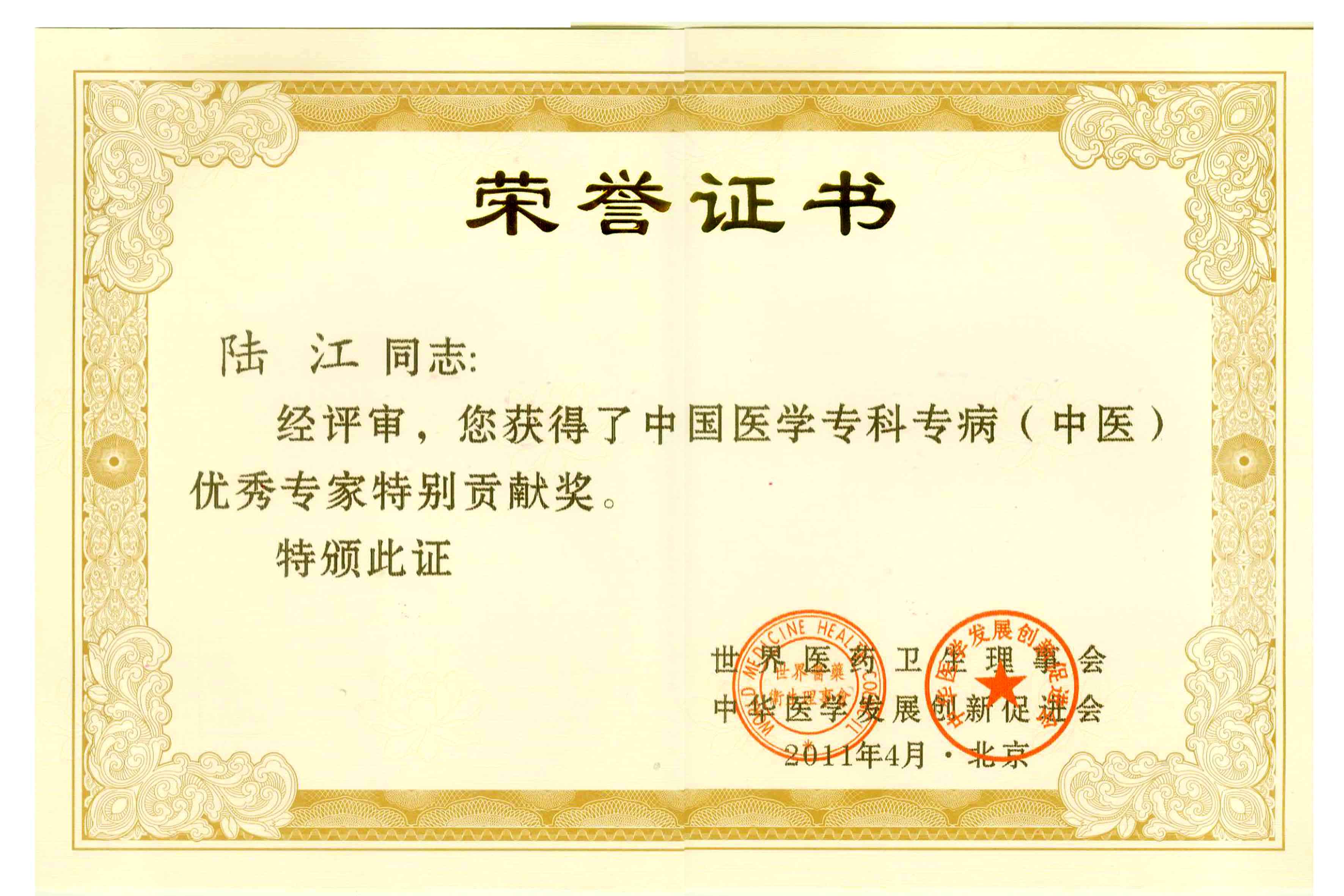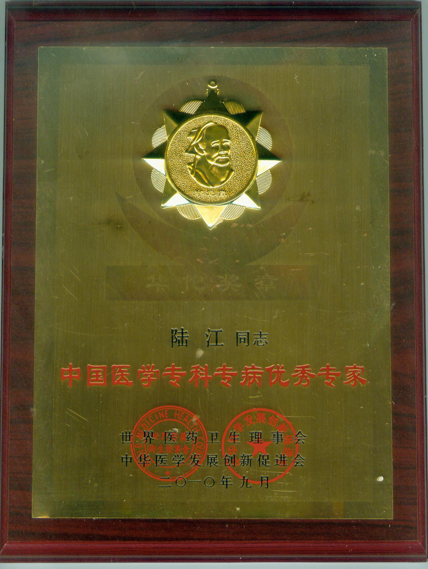 陸江獲得中國醫(yī)學專科專病優(yōu)秀專家恃別貢獻獎