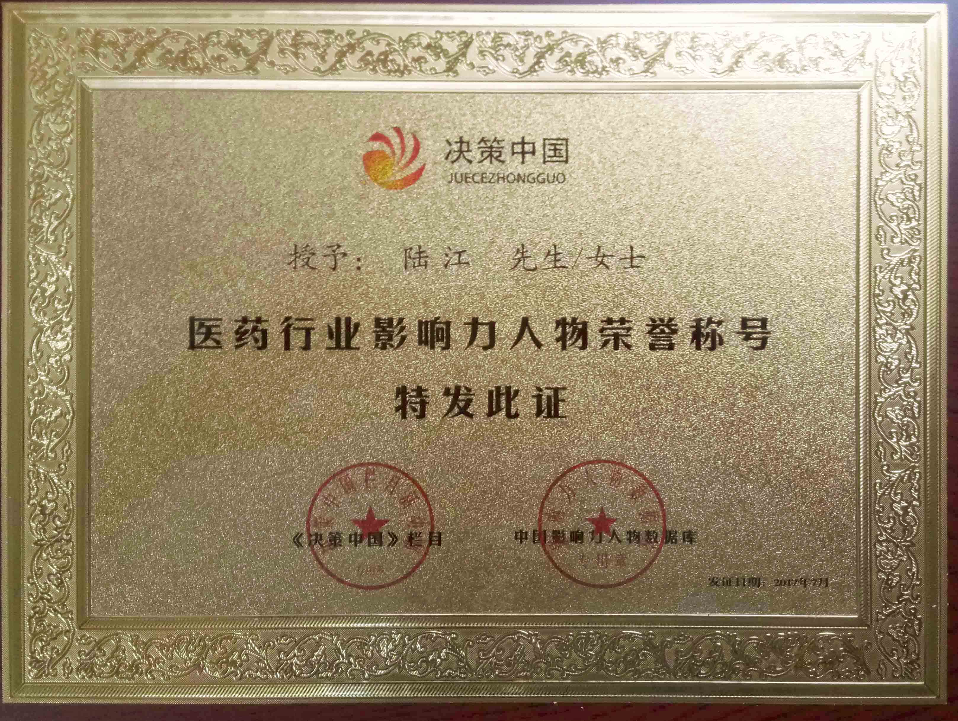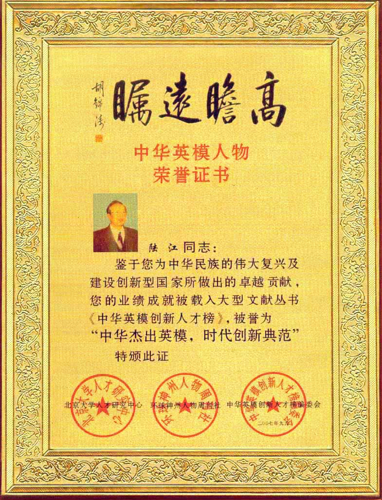 陸江榮獲引領(lǐng)行業(yè)發(fā)展杰出貢獻人物證書 --------卓康公司榮獲全國質(zhì)量、服務、信譽AAA級品牌證書